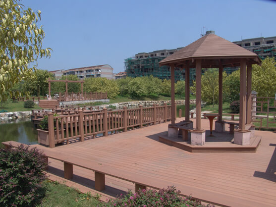 With the shortages of forest resources and the national emphasis on environmental protection, plastic wood products have gradually been promoted, plastic wood flooring, plastic wood guardrails, plastic pavilions, in fact, plastic wood products are mainly composites with wood cellulose and plastics, It is a new type of green environmental protection landscape material. Overall, it is currently a building material that is best for outdoor landscapes. We now see a lot of pavilions is actually a molding wood, then what characteristics do plastic wood pavilions?