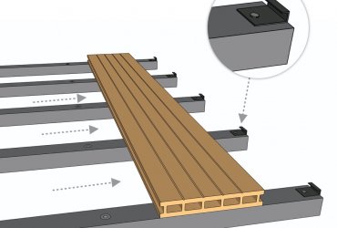 7. Insert the decking into the starter clips, and install the first decking board.